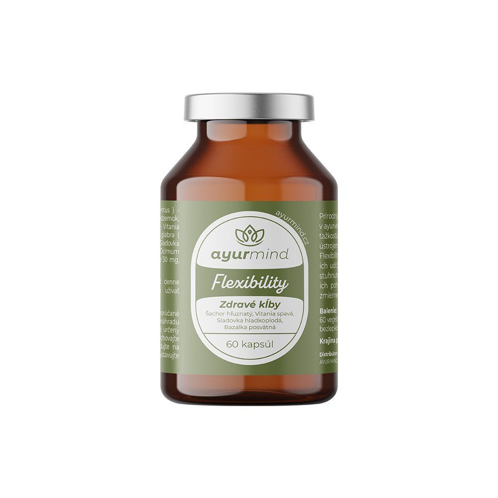 Flexibility je prírodný ajurvédsky doplnok, ktorý pomáha regenerovať kĺby, udržiavať ich zdravé a znižovať zápaly a stuhnutosť. Podporuje pohyblivosť, zmierňuje svalové kŕče a pôsobí protizápalovo, čím prispieva k celkovej flexibilite tela.
