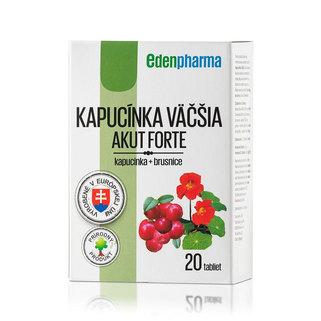 Kapucínka väčšia Akut Forte je prírodný výživový doplnok s mikronizovaným extraktom kapucínky väčšej, kanadskou brusnicou a D-manózou. Pomáha podporovať zdravú funkciu močových ciest a zlepšuje ich prirodzenú ochranu.
