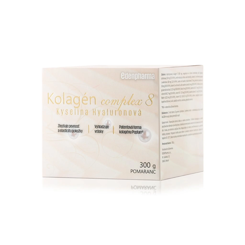 Bioaktívny kolagén Peptan® s molekulovou hmotnosťou 2 kDa je proteín so špecifickým zložením aminokyselín a dobrou biologickou dostupnosťou. Obsahuje malé molekuly kolagénu, ktoré sa účinne absorbujú do pokožky a podávajú sa z vnútra. Kyselina hyalúronová vyplňuje priestor medzi kolagénovými vláknami a prispieva k udržaniu zdravej pokožky. Kolagén complex 8 obsahuje komplex vitamínov a minerálov.