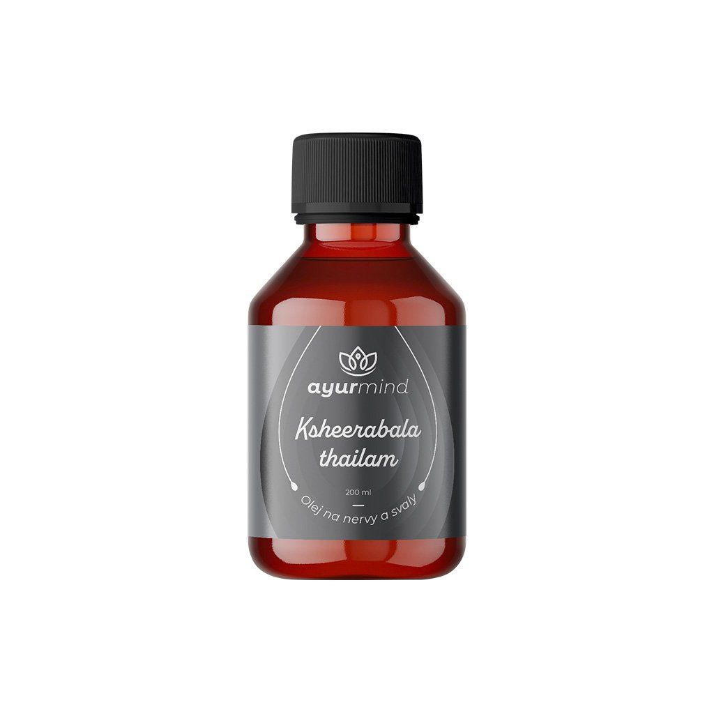 Ksheerbala Thailam je tradičný ajurvédsky bylinný olej, ktorý podporuje zdravý nervový systém, svalovú regeneráciu a pohyblivosť kĺbov. Pravidelná masáž týmto olejom revitalizuje nervy, podporuje krvný obeh a pomáha telu bojovať proti zápalom.