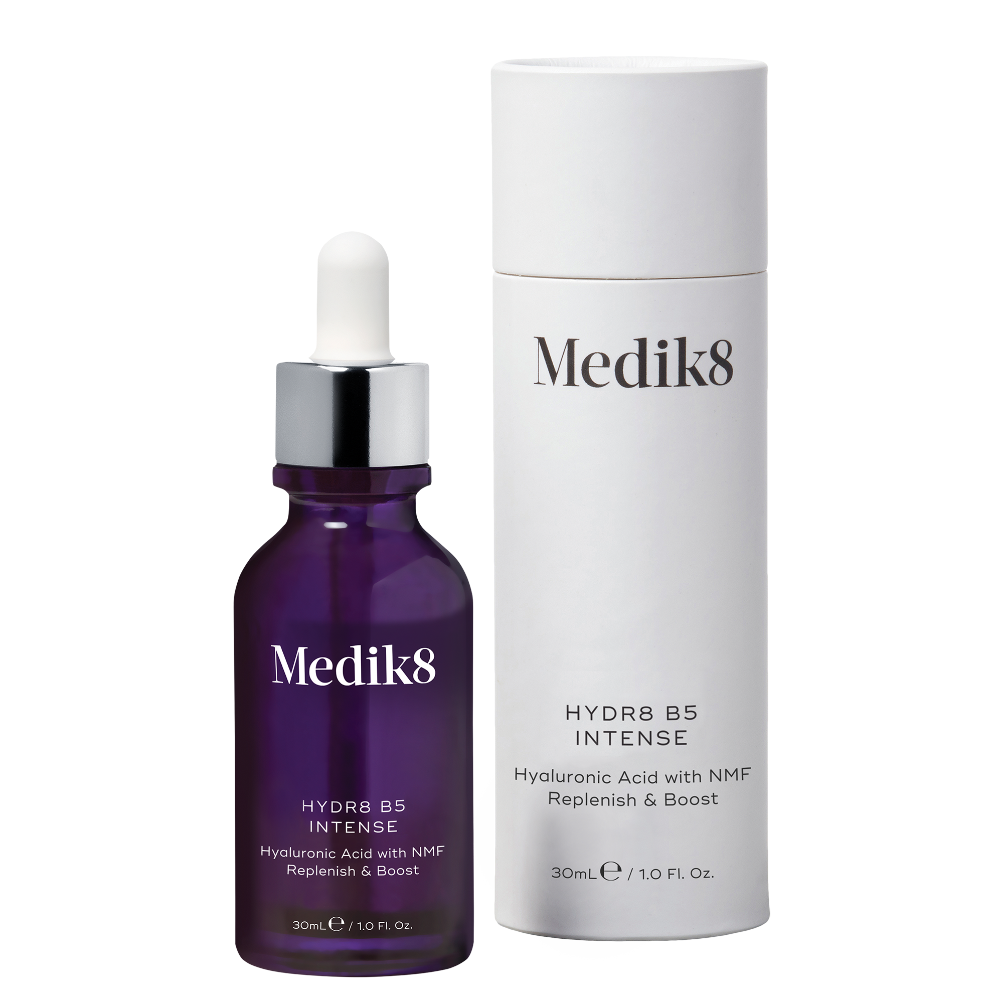 Najobľúbenejšie hydratačné sérum HYDR8 B5 od Medik8 teraz vo verzii INTENSE na ešte intenzívnejšiu hydratáciu a obnovu pleti s obsahom prirodzene zvlhčujúcich faktorov a komplexu aktívnych látok, ktoré navyšujú vlastné produkty kyseliny hyalurónovej v koži.